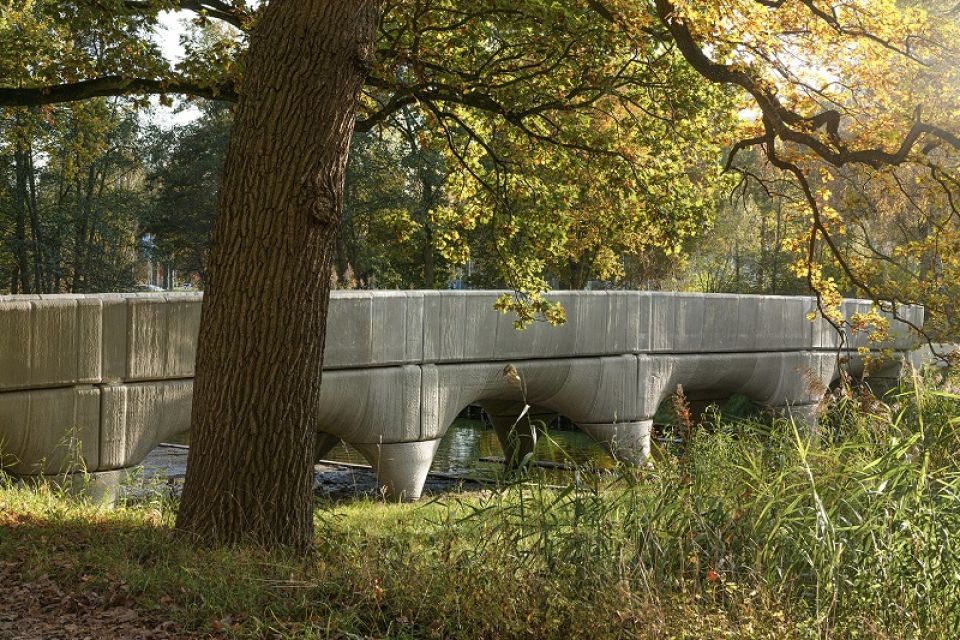 3D-geprinte betonnen voetgangers- en fietsersbrug in Nijmegen. Foto: Rubén Dario Kleimeer