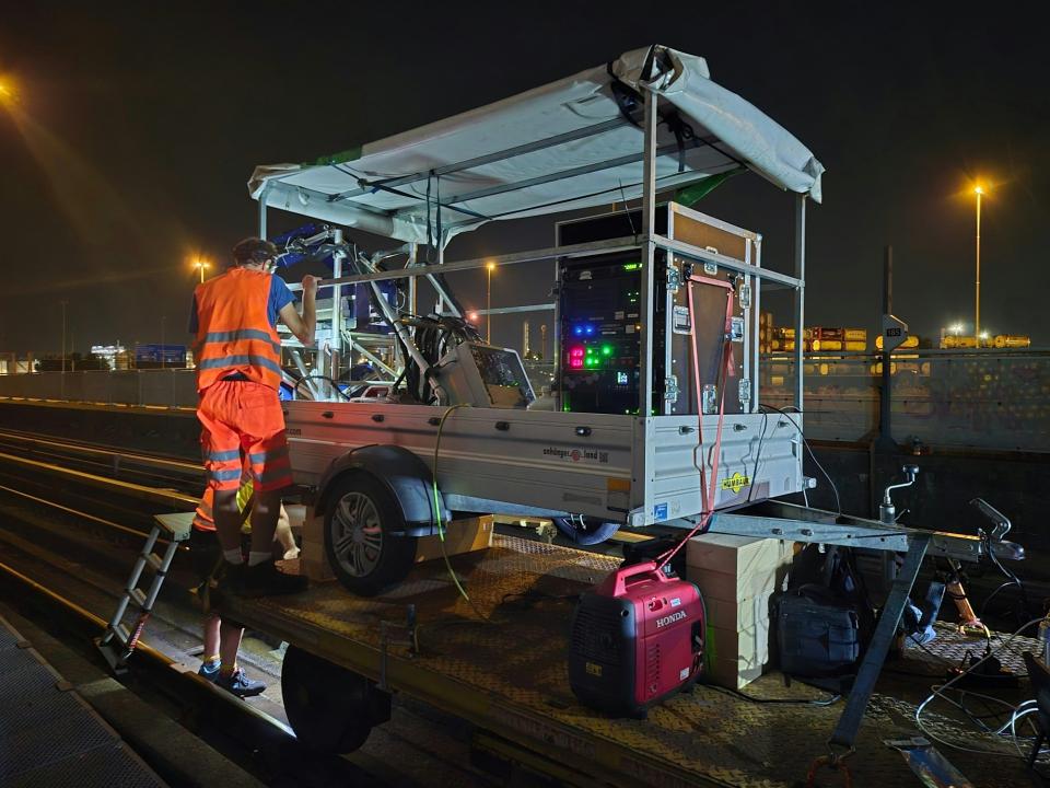 De warmste Rotterdamse dag van het jaar was amper achter de rug. Terwijl de hitte nog nazinderde, werd in de nacht van 1 op 2 juli 2025 vlakbij de metroremise Waalhaven een aanhanger met scanapparatuur bovenop een spoorlorrie gehesen. Na de bevestiging met spanbanden, zorgvuldige uitlijning en uitvoerige testen begon deze bijzondere wagon zijn korte reis naar de Tweede Beneluxtunnel.